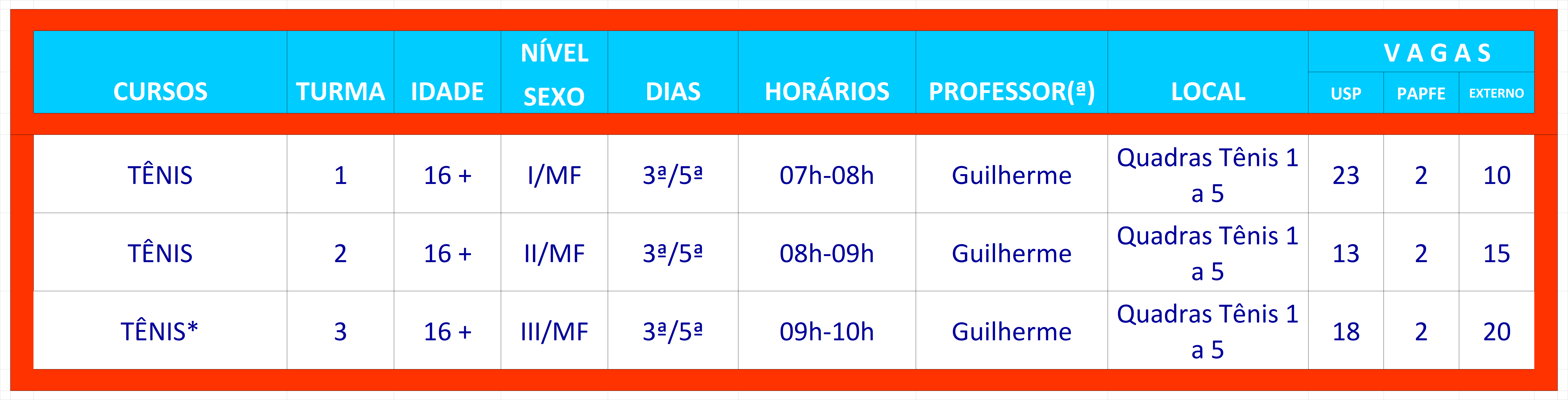 Na primeira semana de aula, entregar uma lata lacrada de bolas de Tênis (marca Wilson, Babolat, Dunlop), na sala 9 do velódromo.